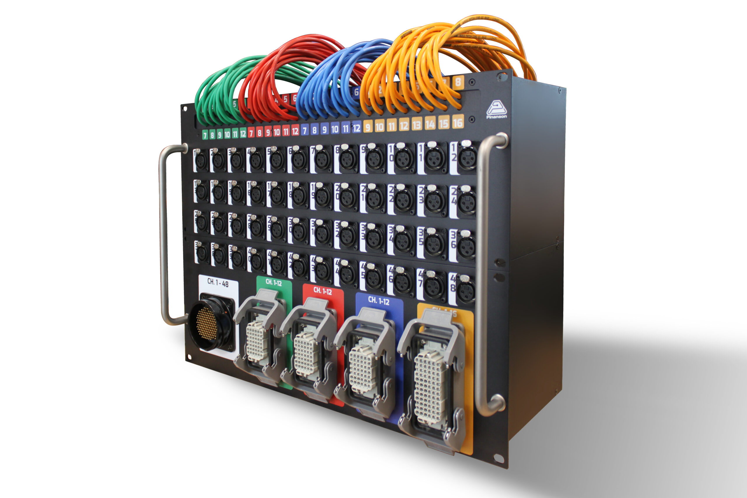 Queríamos seguir utilizando tanto nuestras cajas de escenario remotas como el cableado (que tenemos equipado con conectores Harting) y necesitábamos tener un ‘split’ analógico.