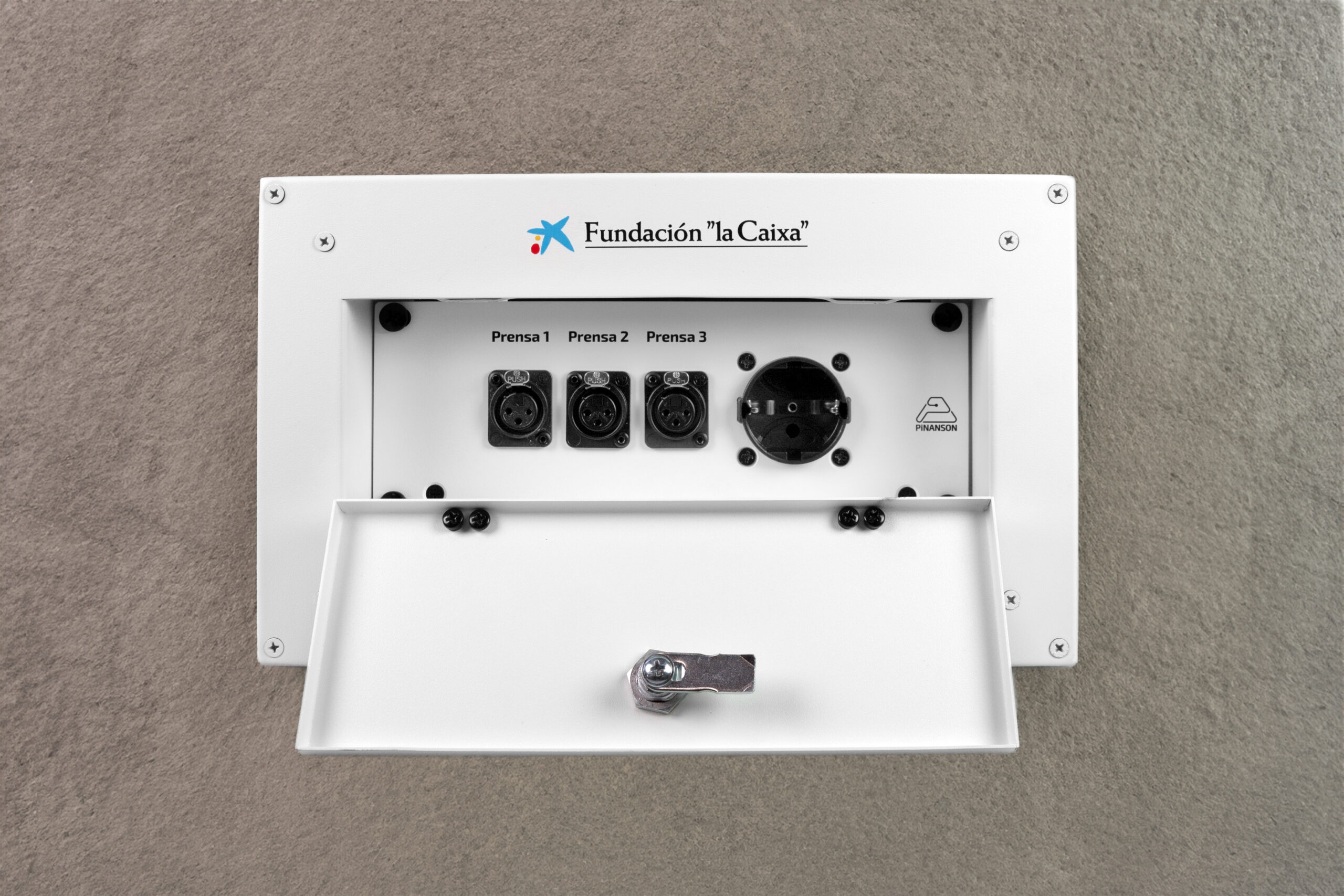 To connect signals to the wall, custom built-in audiovisual boxes with and without doors were installed. Something that characterizes this type of boxes is the ease of installation, as our client Francisco Gómez comments.