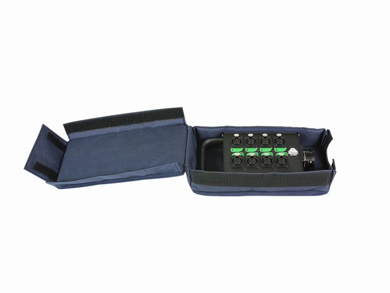 To send the stage signals to the GAR PTRS4765 distributor, 8 remote boxes (differentiated by colour) with 8 channels and circular LK connectors were manufactured. All of them protected with a fabric cover for transport and storage. Detail valued by our client: