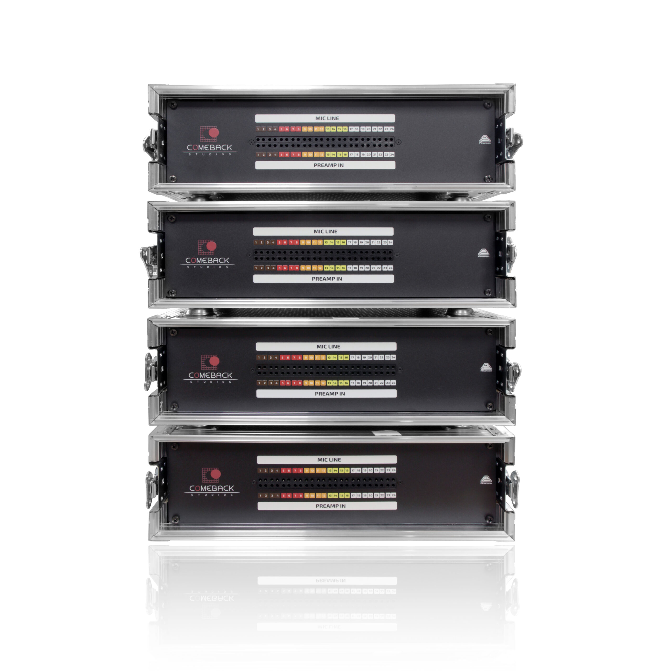 On the other hand, as excellence and the highest audio quality is another essential, we are forced to respect the quality and sound equipment that we find in the best recording studios in the world. They usually have 100% analog components, which prevents us from having integrated solutions like typical audio interfaces or digital mixing consoles, which are integrated solutions (quick to assemble and work) but at the cost of having studio sound quality. Our solution combines quality and ergonomics and, in part, it is thanks to the solution that Pinanson offers us.