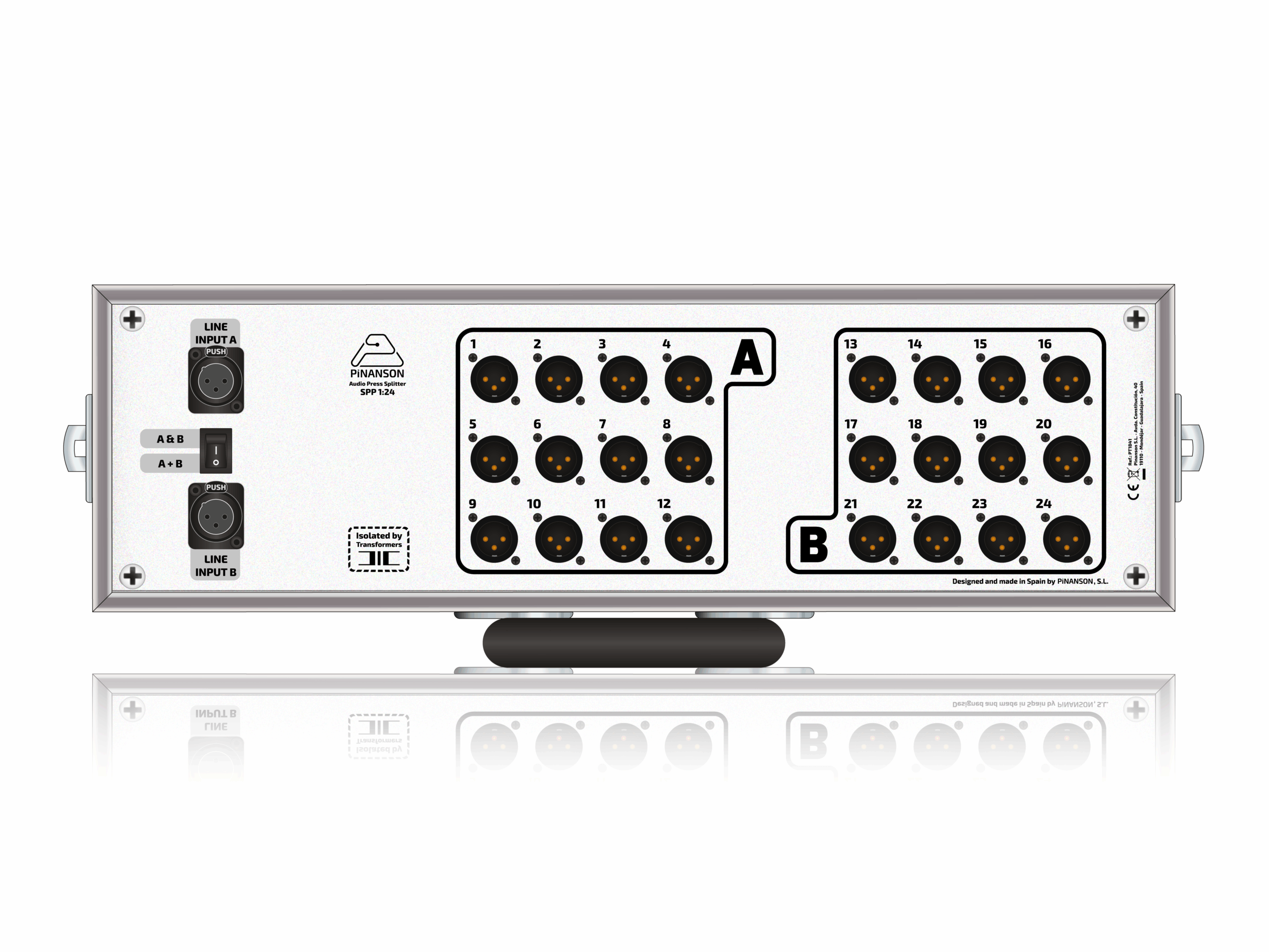 Line-level audio press splitter for passive distribution. For 1 or 2 different channels (depending on selection)
