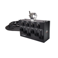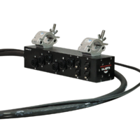 Lighting distributor for connecting and distributing power and DMX signals. With claws for hanging on Truss. | |
